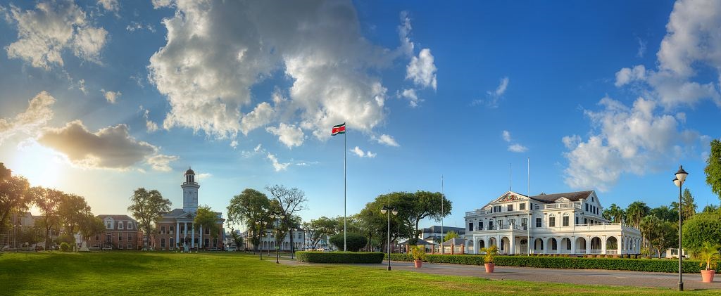 苏里南共和国,位于南美洲国家巴西的东北部,面积16.4万平方千米,人口60万左右,是南美洲最小的一个国家,这里盛产黄金和铝土。1975年11月25日宣告独立,成立共和国。1976年和中国建交,其首任总统叫做H.R.陈亚先,是祖籍广东惠阳的华人后裔。19世纪末因为苏里南发现了黄金,华人不远万里来到了苏里南,华人人口不是最多的,但华人文化在苏里南无处不在。