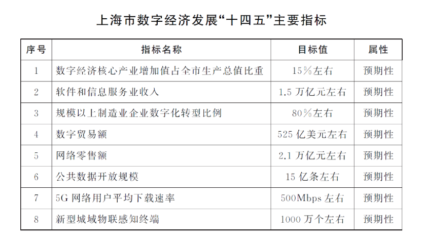 上海市人民政府办公厅印发了《上海市数字经济发展“十四五”规划》( “下称规划”)的通知。在重点任务方面,规划称,围绕数字新产业、数据新要素、数字新基建、智能新终端等重点领域,加强数据、技术、企业、空间载体等关键要素协同联动,加快进行数字经济发展布局。