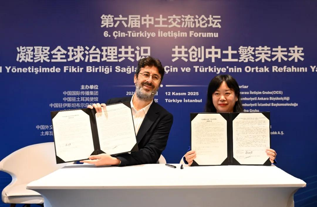11月12日,由中国外文局和土耳其绿松石媒体集团联合举办第六届中土交流论坛。中国外文局局长常勃、土文旅部副部长阿尔帕斯兰及土政商学媒各界代表近百人出席。与会嘉宾围绕“凝聚全球治理共识,共创中土繁荣未来”主题深入研讨,高度评价、积极支持全球治理倡议,现场还签订了“中土非遗文化传承与保护”课题研究谅解备忘录,并举办中国主题书展。期待“十五五”时期双方高质量共建“一带一路”合作结出更多硕果,中土战略合作关系实现更大发展。